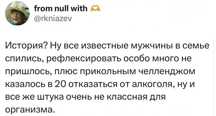 Не все пьющие — счастливыеЕсть такое заблуждение, что алкоголь помогает стать более общительным или решать проблемы. Но правда в том, что он часто только усугубляет их. Люди, которые часто пьют, могут чувствовать себя ещё более одинокими, чем те, кто обходится без него. Ты ведь не хочешь стать "грустным клоуном", который веселит всех, но сам не счастлив?
