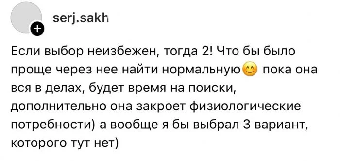 1. Крис в соцсетях решила узнать у мужчин, кого бы они выбрали