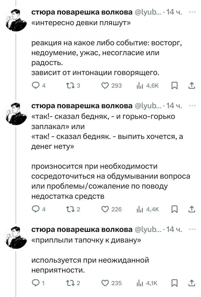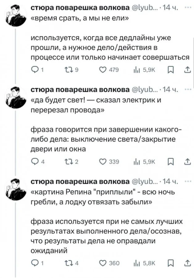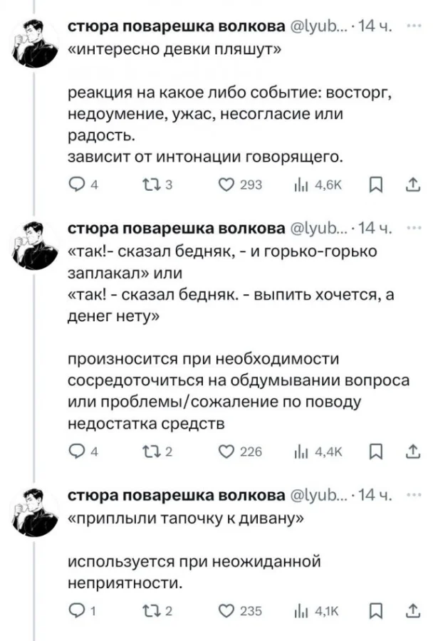 Сегодня часто выпускают гайды для "взрослого" поколения, в которых поясняются современные молодежные словечки. Так сказать, чтобы лучше понимать зумеров. Но существуют и противоположные гайды! Например, автор этой подборки составил целый сборник из "батиных" фразочек, которые молодежь в жизни не поймет.