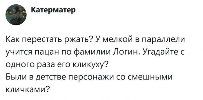 Обычно такая тенденция наблюдается в младшей школе и продолжается дальше – в других учебных заведениях, на работе и не только. Но не исключено, что навешиванием ярлыков грешат уже детсадовцы. Причиной появления прозвища может стать что угодно: имя, фамилия, рост, телосложение, хобби, национальность. Иногда такие клички бывают обидными, а порой забавными и остроумными и даже нравятся владельцу. Пользователи тряхнули стариной, вспомнили собственные детские прозвища и те, что давали другим, и проанализировали, как их придумывают современные дети и подростки.