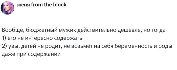4. Неожиданное мнение - бюджетного мужчину скучно содержать