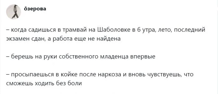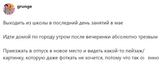 В действительности в нашей уже взрослой жизни масса ощущений, применительно к которым неожиданно приходит понимание того самого, особенного, уникального, душевного. Они бывают как радостными и обнадёживающими, так и грустными и заставляющими задуматься. Пользователи обсудили эту немного философскую тему и поделились своими ощущениями и глубиной эмоций, связанных с осознанием и принятием какого-то особенного момента своей жизни.