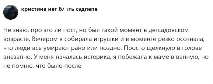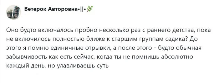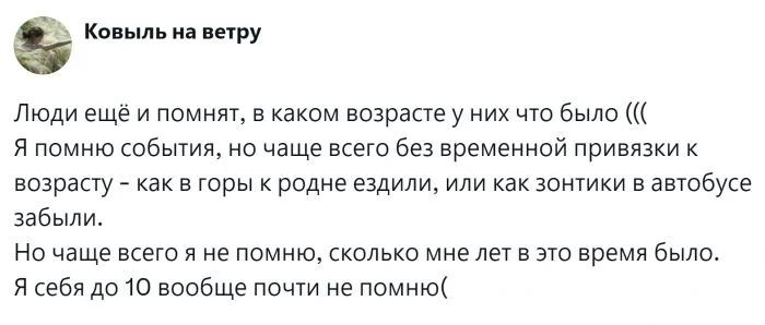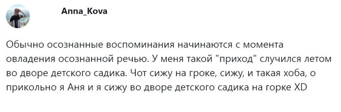 А в каком возрасте вы стали осознавать себя, и запомнился ли вам этот конкретный момент?