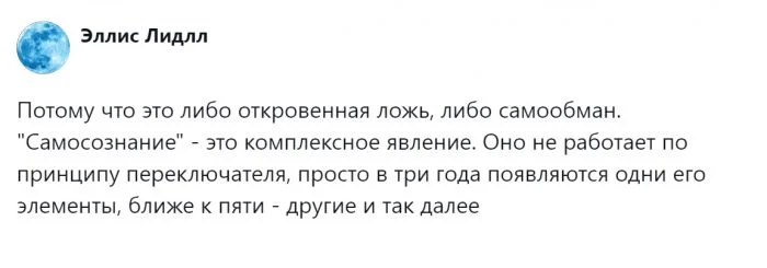Но это если в общем и целом. При этом форумы пестрят рассказами о неожиданном инсайте, вспышке, озарении. Когда только что был неразумным малышом, а через секунду всё понял о мире и своём месте в нём. Да и знакомые, родственники, коллеги не отстают. А ты слушаешь/читаешь и понимаешь, что у тебя ничего подобного не случилось. Неужели самосознание не проклюнулось? А если оно продолжить спать дальше? Своими опасениями по этому поводу поделились испуганные пользователи, а опытные их успокоили советами и примерами из жизни.