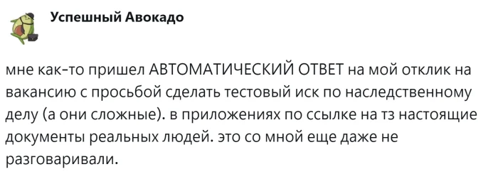 Многие соискатели, вероятно, не раз оказывались в ситуации, когда работодатель предлагает выполнить тестовое задание, которое по объему и сложности напоминает полноценный проект. С одной стороны, для компаний важно оценить навыки кандидата, однако с другой стороны, никто не желает становиться бесплатным исполнителем, чья работа будет использована и приносить результаты всего через несколько минут после завершения.