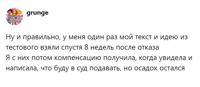 Как выявить попытку получить от вас идеи под предлогом тестового задания? Пользователи поделились своими реальными историями, раскрыли наиболее распространённые уловки работодателей и предоставили советы по защите своего времени и талантов от эксплуатации.