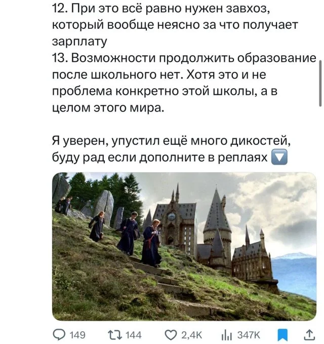 Многие из нас, кто в детстве увлекался "Гарри Поттером", мечтали получить заветное письмо из Хогвартса. И хотя многие из них уже повзрослели, надежда всё еще жива. Но если взглянуть на Хогвартс с рациональной точки зрения, то можно прийти к выводу, что это, пожалуй, самая ужасная школа из всех возможных! В социальных сетях этому посвящено множество обсуждений. Давайте заглянем в них.