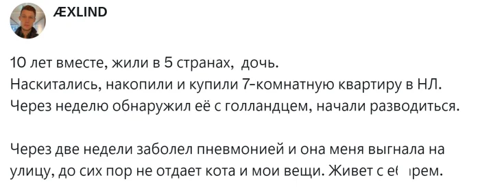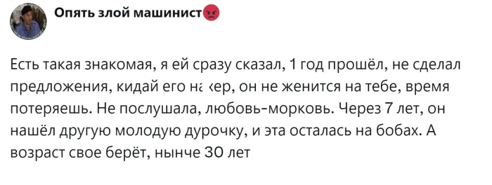 Когда впереди целая жизнь, а сердце переполнено любовью к своему избраннику, любая девушка с нетерпением ждет предложения руки и сердца, мечтая получить официальный статус жены и начать строить семью на законных основаниях. Однако не каждая невеста получает это заветное предложение. Часто бывает так, что партнеры расстаются после нескольких лет или даже десятилетий совместной жизни, ссылаясь на причины вроде «накопил на жилье», «встретил другую», «потерял чувства», или даже «мы стали чужими друг другу». Это касается обеих сторон. Пользователи обсуждают трагические примеры завершения отношений, размышляют об этом, но так и не находят ответа на вопрос, почему люди ведут себя так подло и аморально.