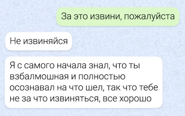 Давно не радовали вас веселыми подборками интересных диалогов. Пора это исправить! Давайте ознакомимся с новыми примерами из чатов, где собеседники могут слегка удивить своей логикой.