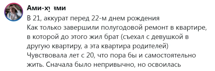 В каком возрасте вы решили переехать от родителей? Как вы думаете, когда наступает подходящее время или возраст для такого шага?