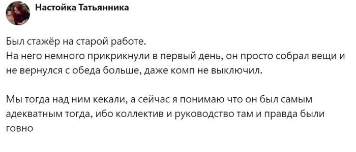 Все чаще молодые работники, которых старшие поколения называют «снежинками», покидают свои рабочие места в тот же день, как только подписывают документы. Что это: непринятие реальности, повышенная чувствительность к условиям или новая норма трудовых отношений? Что заставляет людей так быстро менять свое решение? Пользователи поделились своими историями на эту тему. Оказалось, что среди причин не только ошибки рекрутинга, неожиданные реалии компании, но и личные мотивы.