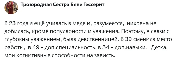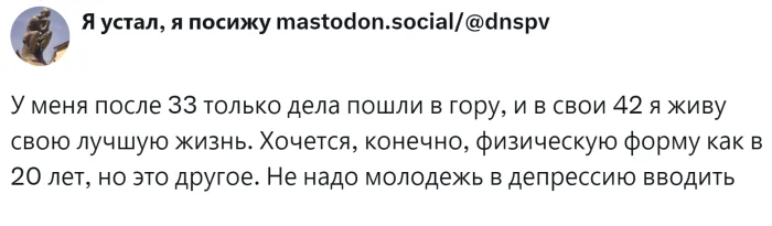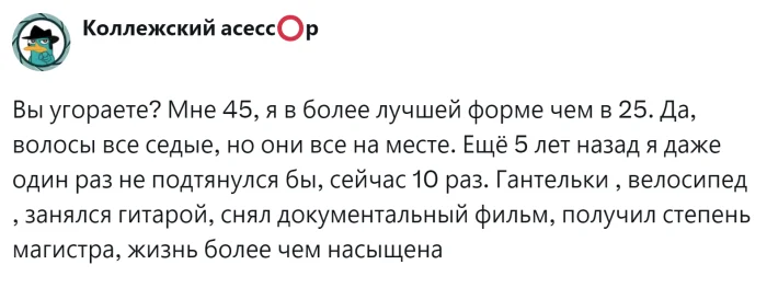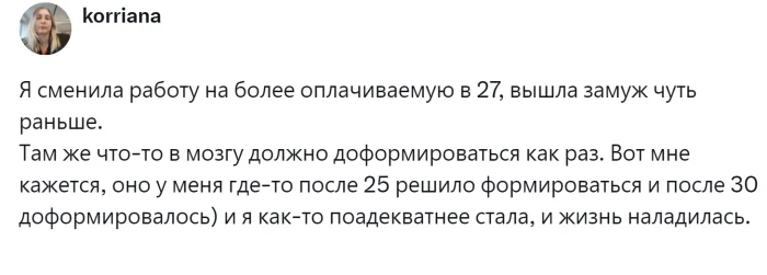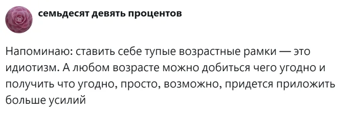 Поскольку когнитивные функции человека начинают постепенно ослабевать после 30-35 лет, заметные изменения становятся очевидными после 45 лет, а после 60 лет эти изменения становятся еще более выраженными. Этот вопрос вызвал жаркие дебаты среди пользователей, которые разделились на два лагеря. Некоторые считают, что после 23 лет человек уже не может добиться чего-либо значимого, в то время как другие убеждены, что можно изменить свою жизнь в зрелом возрасте, выучить новый язык, освоить новую профессию, запустить бизнес или заняться сложным хобби.