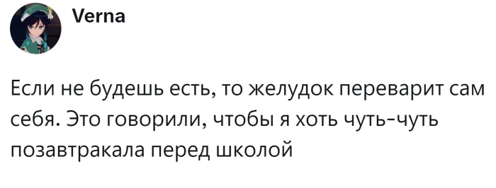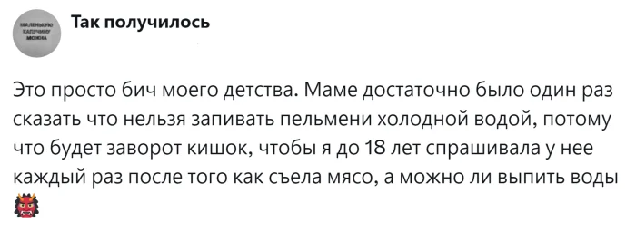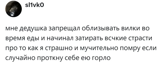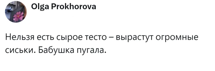 Как же хотелось в детстве украдкой попробовать сырое тесто или фарш, пока мама или бабушка готовили на кухне пироги и котлеты. Казалось, ничего вкуснее этой, в общем-то, несъедобной массы просто не существует. Однако на каждую подобную шалость у взрослых находилась своя пугающая история. Какие именно страшилки (и не только про еду) вспомнили пользователи после тщательного погружения в воспоминания?
