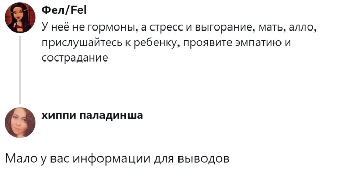 Одна из матерей подростка обратилась к пользователям сети с жалобой на постоянные перепады настроения у дочери, вызванные гормональными изменениями. Из-за этого девочка категорически отказывалась посещать школу. Однако при более детальном рассмотрении ситуации выяснилось, что корень проблемы гораздо глубже – непомерная учебная нагрузка, с которой не каждый взрослый справится без эмоционального истощения. Пользователи предложили различные решения, большинство из которых сводилось к необходимости расставлять приоритеты в пользу собственного здоровья и благополучия.