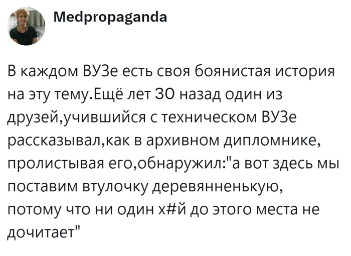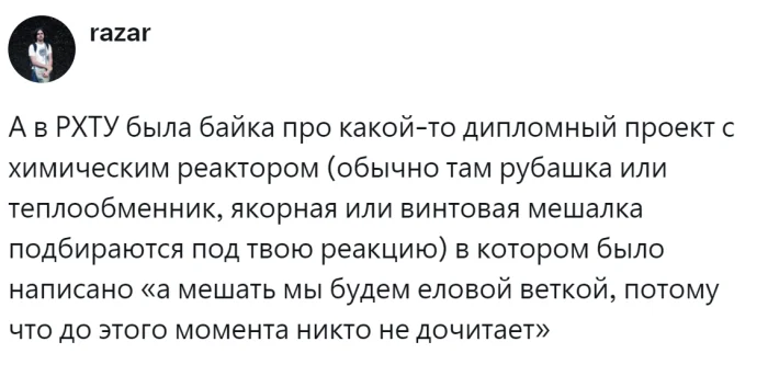 Речь, естественно, идет о вечном противостоянии между преподавателями и студентами. Преподаватели прилагают максимум усилий, чтобы в головах молодого поколения закрепились хотя бы базовые знания, а студенты, в свою очередь, включают творческий подход, чтобы получить высокую оценку с минимальными усилиями. В ответ на тщательную проверку работ студенты испытывают преподавателей на прочность, добавляя в курсовые материалы, которые, мягко говоря, никак не связаны с темой или предметом. Если преподаватель заметит такие вставки, всегда можно сослаться на то, что младший брат поиграл за компьютером или котёнок пробежал по клавиатуре. А если нет, то можно считать, что следующий проект написан без лишних усилий. Пользователи поделились своими историями и обсудили возможные последствия таких экспериментов.