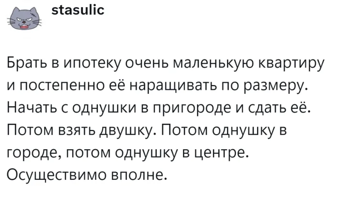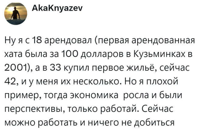 В молодости переезды и аренда жилья могут казаться романтичными и даже захватывающими. Однако с возрастом начинают возникать тревожные мысли: что будет, когда наступит пенсия, и доходы сократятся? Как справляться с оплатой аренды, если заработок станет недостаточным? Эти вопросы стали причиной обсуждений среди пользователей, которые пытались понять, насколько обоснованы страхи о возможной бездомности в старости. Что лучше: начать с малого, пусть даже в некомфортных условиях, но в собственном жилье, вкладывая в него большую часть доходов? Или не задумываться о будущем, живя здесь и сейчас, ведь старость может и не наступить?
