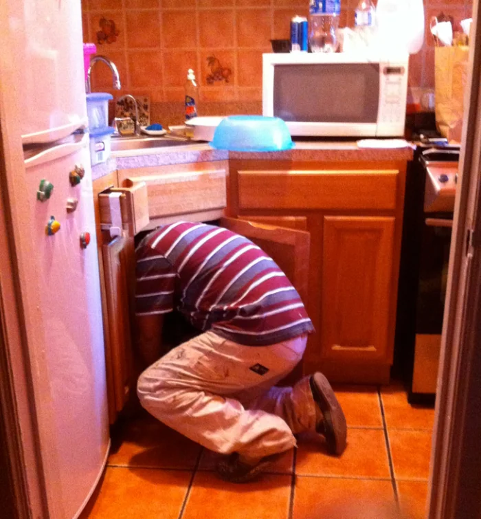 - Батя постоянно что-то чинит. И мама его потом за это очень расхваливает перед всеми друзьями и родственниками, мол: «Вот какой Олежка у меня молодец, на все руки мастер». И вот вчера, я застал папу за тем, что он специально откручивает дверцу от шкафчика на кухне, чтоб мама потом ему сказала, что ее нужно подкрутить, он ее прикрутит, и она его опять будет расхваливать.