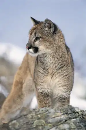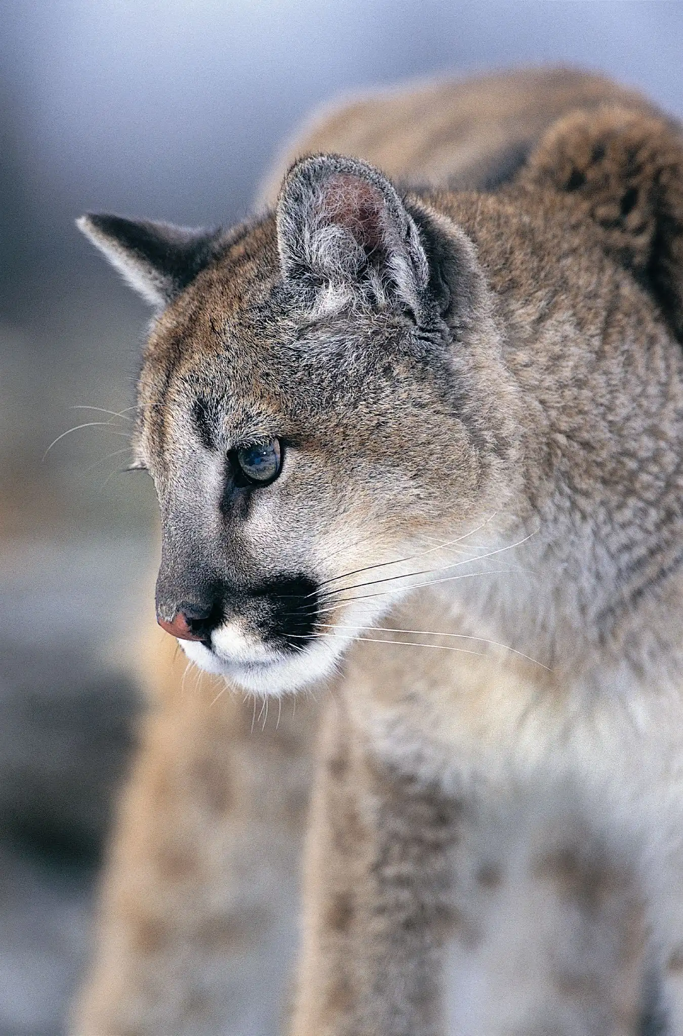 Наша героиня многолика. Ученые насчитывают до тридцати подвидов пумы, отличающихся друг от друга окраской и размерами. Горные кошки порой вдвое меньше своих равнинных родичей. Оттенки шерсти меняются от песочно-коричневого до серого в зависимости от места обитания. На груди, горле и брюхе зверя - белесые подпалины. Особые приметы; темные полоски над верхней губой, уши тоже темные, кончик хвоста совсем черный.