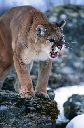 Ловкая, подвижная и гибкая пума отлично лазает по деревьям и путешествует без страха по обрывам, совершая прыжки с высоты 12 - 15 метров. Прыжок пумы настолько красив и впечатляющ, что многие художники-анималисты изображают ее в таком полете.