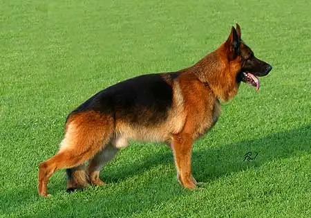 Немецкая овчарка - собака среднего роста, в длину чуть больше, чем в высоту, крепкая, с хорошо развитой мускулатурой, поджарая, костяк прочный.
