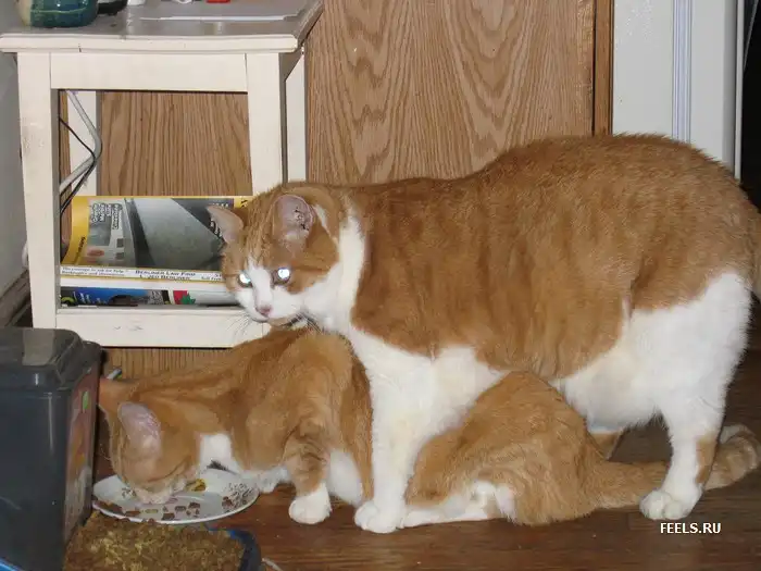 Всё это похоже на съёмку зоопорнофильма,остаётся только представить кошаков-зрителей.