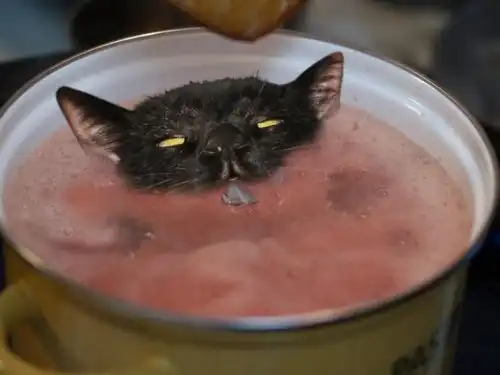 Слегка удивила фотка где *бо чёрный кот в кастрюле с супом тонет