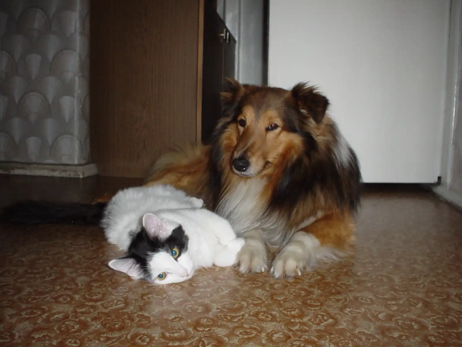 на первой фотке мне показалась Сонечка катенком, а она уже взрослая. Прикольно собака смотрится с кошкой как БАНДА. Жаль что у меня собака не любит кошек