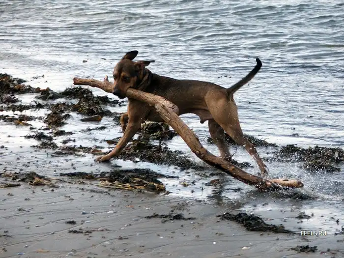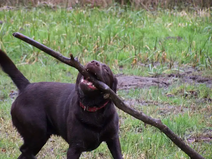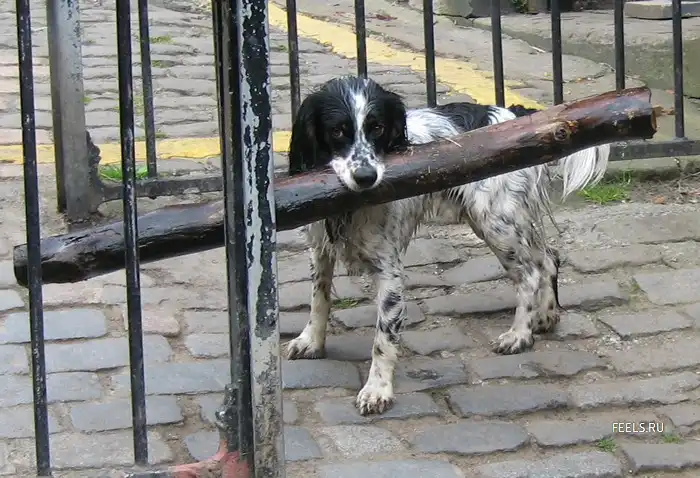У некоторых псов. Логичнее смотрелась бы в зубах-чия нибуть нога