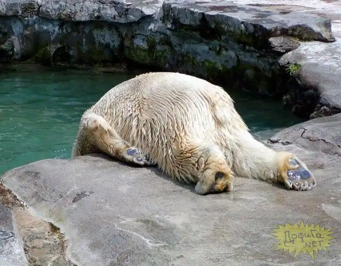 у белого медведя были тяжелые выходные, что аж голова болит и пить охота...
