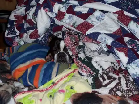 у меня питбуль-тэрер тоже зимой под одеялом спал