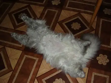 Хэх)))Проикольная...представляю каково расчесывать ее...С такой-то шерстью это необходимость...