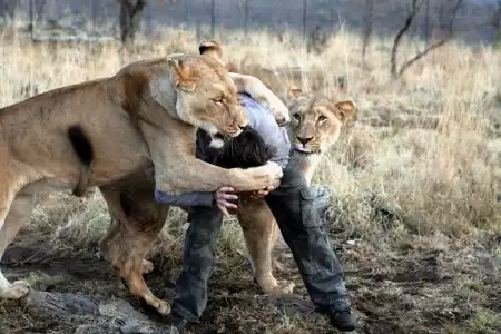 Это не говоря уж о физической силе. Помню, как наша собака меня встречала: подбегала и... сбивала с ног, от радости не рассчитав силы. А что там собака по сравнению со львом...