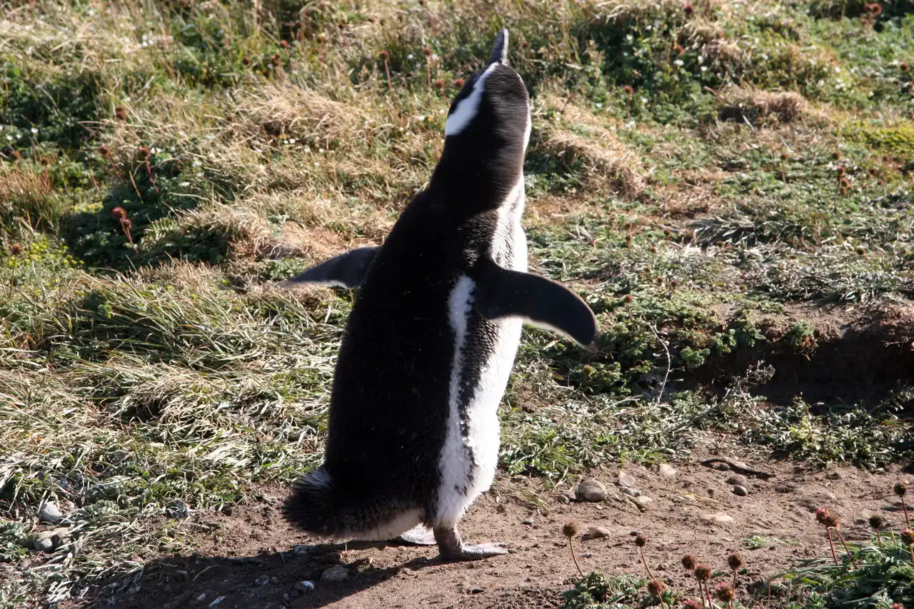 На берег или лёд пингвины выходят из воды прыжком. На суше передвигаются шагом, реже бегают, по снегу скользят на брюхе, отталкиваясь лапами и ластами.