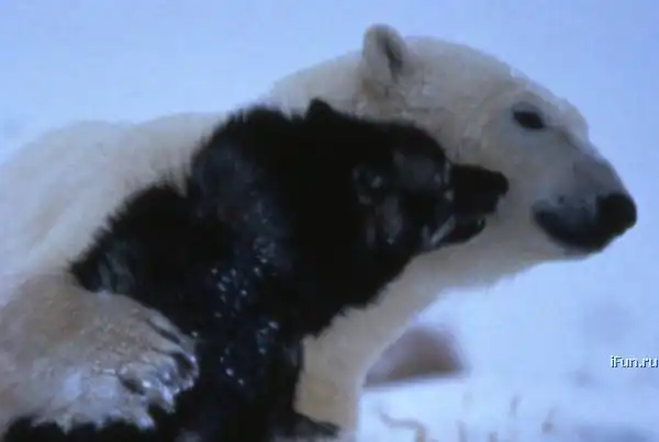 Бывает же такое! Со стороны смотрится очень мило, но вот рядом с таким мишкой оказаться не хотелось бы.