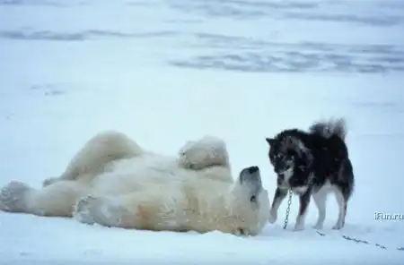 на первой фотке на медведа лают 2 собаки,а на последующих фигурирует одна...