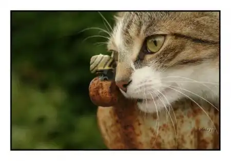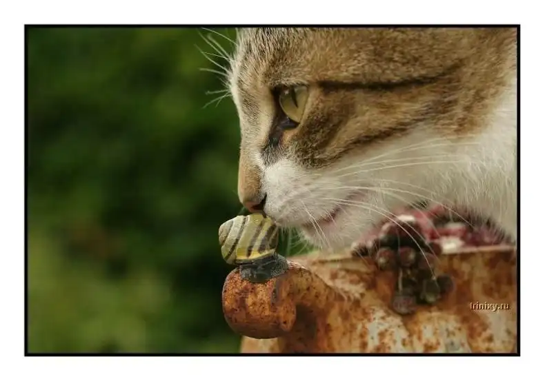 Этот красавчик своим обаянием покорит любого!Он, как самая настоящая кошачья модель, снялся в фотосессии с другими животными кроликом и улиткой )