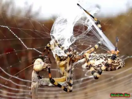 это богомол - риветина. у риветин с пауками разговор короткий...