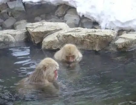 эти макаки живут в японии и зимой плавают в природных горячих источниках... ))