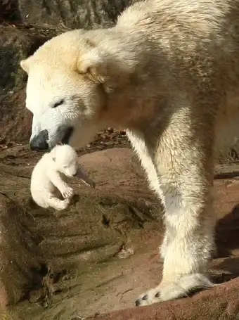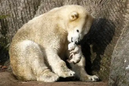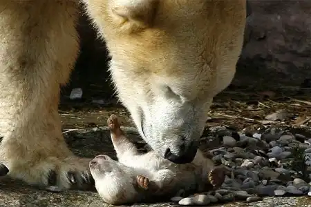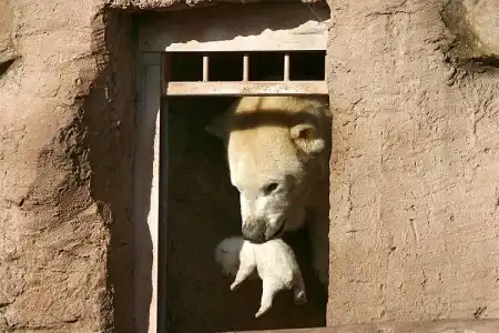 Мама Вера из Нюрнбергского зоопарка, вероятно, под впечатлением вчерашнего шума в прессе вокруг её медвежат решила сегодня продемонстрировать свои лучшие качества и показала миру одного из своих малышей. По злой иронии судьбы вторая медведица Вильма, которая казалась работникам зоопарка заботливой мамашей, похоже, съела свое потомство – один из смотрителей, который смог вчера обследовать её жилище, никого там не обнаружил. Такие дела.