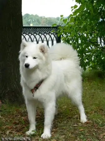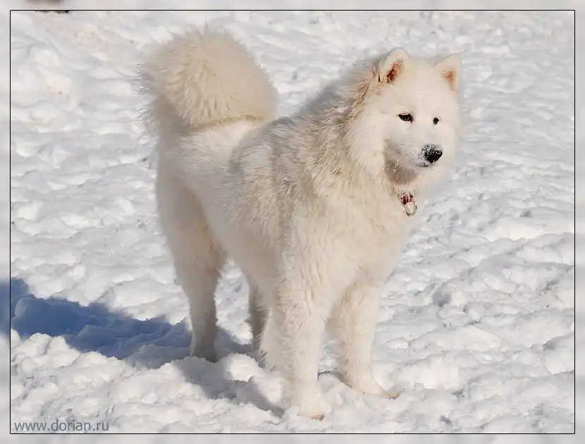 Самоедская лайка ( самоед ) в далеком прошлом - охотник и защитник стад северных оленей, сегодня эта белоснежная собака, самоед, сохраняет многие из своих первоначальных свойств.