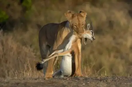 Лев на охоте это
