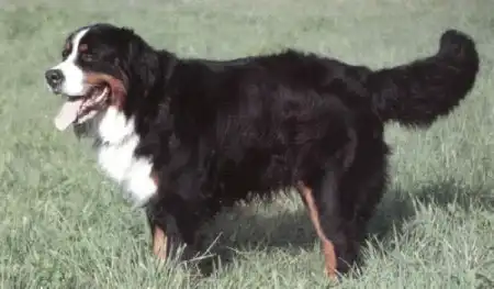 Особенности строения: глаза коричневые, миндалевидные. Уши треугольные. Шея и туловище сильные, мускулистые. Грудная клетка широкая. Лапы короткие, округлые. Хвост с обильной бахромой, не закрученный. Шерсть длинная, мягкая и шелковистая. Окрас угольно-черный с яркими красновато-коричневыми и белыми пятнами.