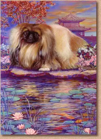Эта порода собак упоминается в самых ранних китайских свитках и известна как самая древняя из чистопородных собак. Существует литература о разведении пекинес в Древнем Китае, датируемая V в. до н.э.