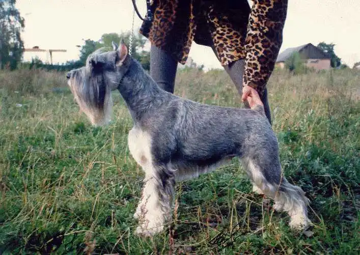 Описание: миттельшнауцер - собака средних размеров. Высота в холке - 47-50 см. Вес - около 15 кг. Силуэт собаки как бы вписывается в квадрат. Телосложение скорее крепкое, чем изящное. Голова имеет продолговатую форму. Переход от лба к морде выражен хорошо. Нос черный. Прикус ножницеобразный. Глаза овальные, темные. Уши частично купируются с целью придания им заостренной формы, хвост купируется до четвертого позвонка. Передние ноги должны быть идеально прямыми, а задние - слегка согнутые, очень сильные и находятся под тупым углом по отношению к туловищу. Шерсть густая, довольно жесткая и прочная. Усы и борода - густые, брови немного торчат. Шелковистая или волнистая шерсть считается дефектом. Окрас - перец с солью или полностью черный. Необходим тщательный уход за шерстью этих собак (стрижка).