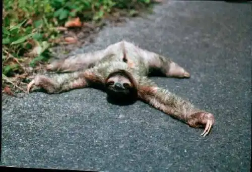Особые приметы: Почти все время ленивцы проводят, вися на ветке дерева спиной вниз, 15 часов в сутки ленивцы спят. Физиология и поведение ленивцев ориентировано на жесткую экономию энергии, т.к. питаются они малокалорийными листьями. Переваривание занимает около месяца. У сытого ленивца ⅔ веса тела может приходиться на еду в желудке. У ленивцев длинная шея, чтобы доставать листья с большой территории, не передвигаясь. Температура тела активного ленивца составляет 30-34 °C, а в покое ещё ниже. Ленивцы очень не любят слезать с деревьев, потому что на земле они совершенно беспомощны. Кроме того, это требует затрат энергии. Слезают вниз они для отправления естественных потребностей, которое совершают всего раз в неделю (поэтому мочевой пузырь у них огромный) и иногда для перехода на другое дерево, где в целях дополнительной экономии энергии часто собираются группами в развилках ветвей. Есть предположение, что при этом они лениво спариваются.