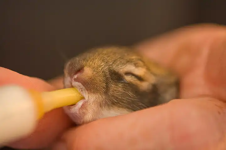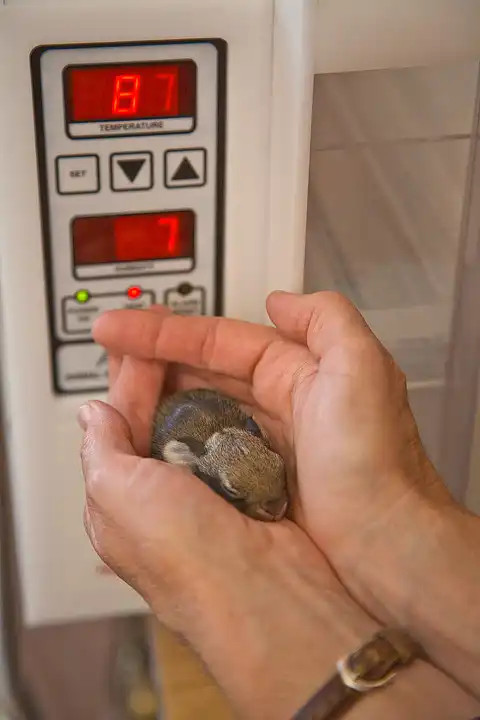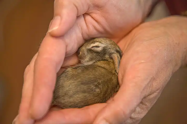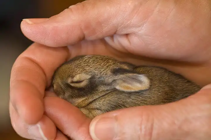 кролик то хорошенький, но после этого его мамка не примет и он - покойник или кормить через соску.