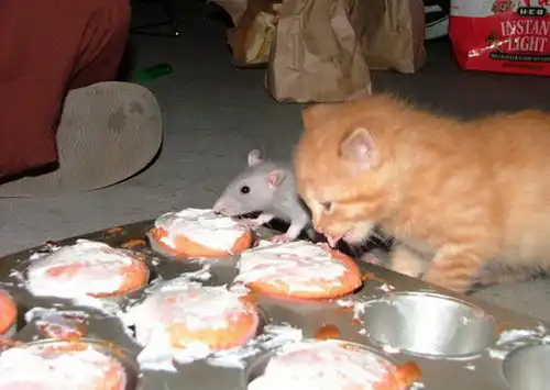 Мне особо понравилась фотка смышкой и котенком, облизывающими ватружки ))
