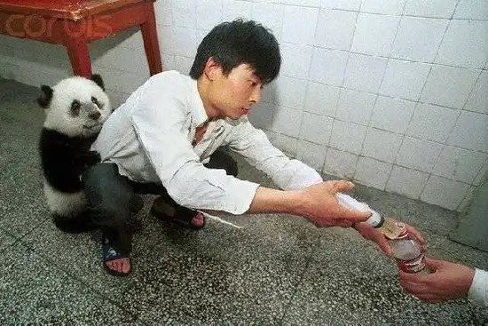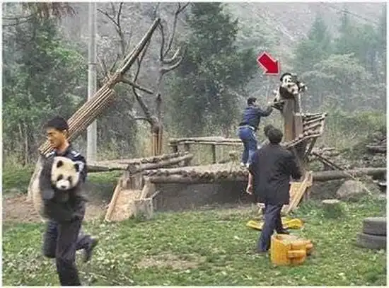 Во время землетрясения, от испуга панды целой кучей забрались на одно дерево. Позже их спасли и напоили теплым молоком.