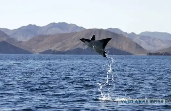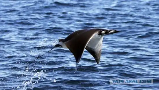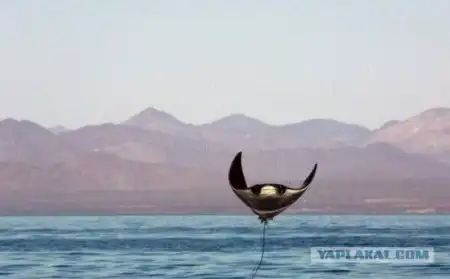 Скат Мобула - электрический родственник всем известных Морских дьяволов, который водится в Мексиканском заливе. Они выпрыгивают из воды на несколько метров, выделывая в воздухе немыслимые сальто и пируэты. При этом ученые не могут объяснить: зачем Мобуле нужны такие “полеты” над морем!?