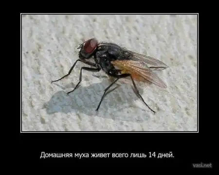 домашняя муха живёт всего 14 дней...а если повезёт, то и того меньше!